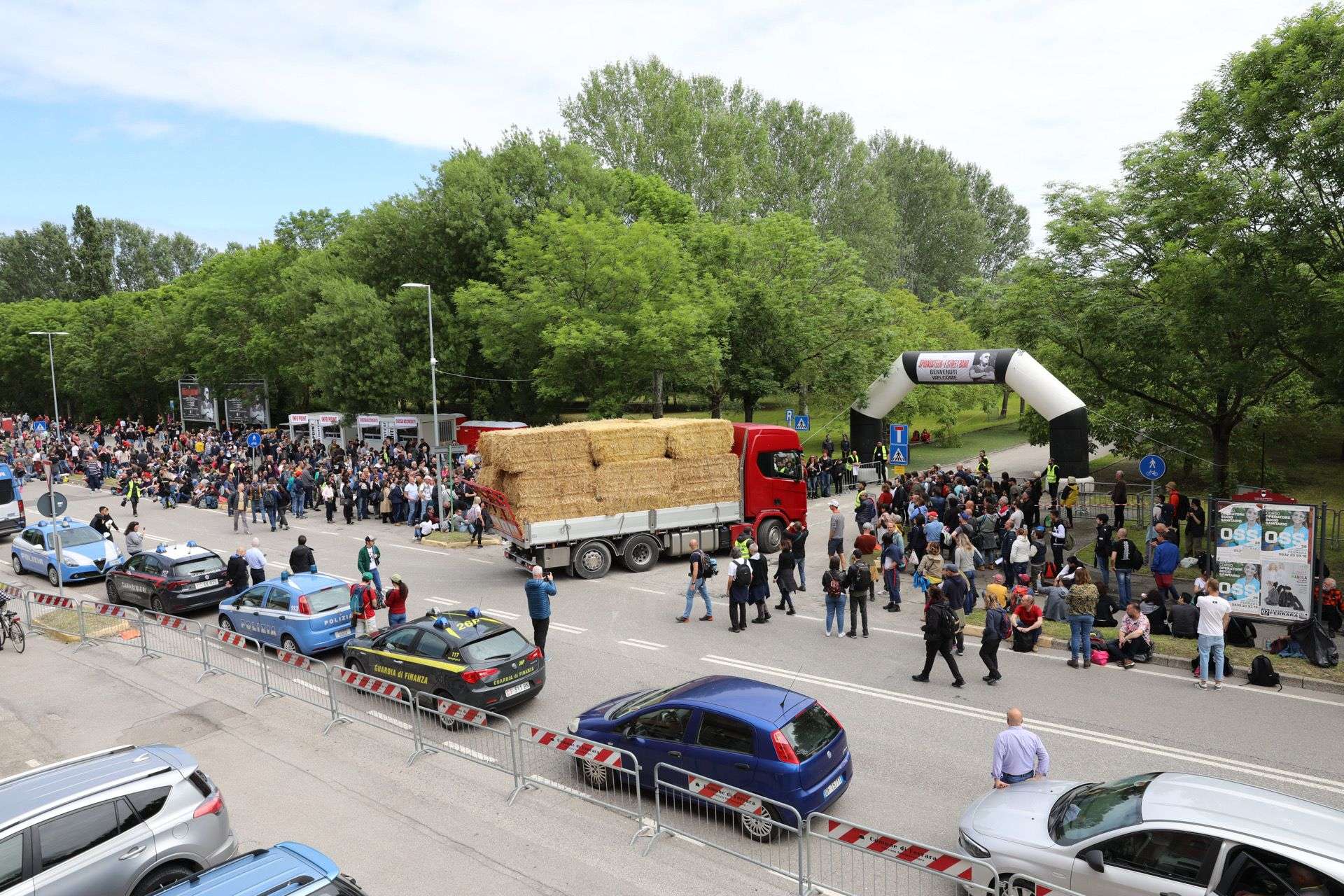 Eppure la giornata non era iniziata certo al meglio: il parco imbevuto d’acqua dalla pioggia incessante nei giorni scorsi pareva essere abbastanza in ordine a giudicare dalle foto diffuse dagli organizzatori sui social. Ma l’apertura cancelli prevista per le 8 del mattino è stata rimandata in poche ore prima alle 10 e poi alle 12.45, quando sono entrati i primi fan che erano accampati da qualche giorno in via Canapa. Nel mentre erano successe due cose strane: l’arrivo di camion con enormi balle di paglia da distribuire sul fango per tentare disperatamente di asciugarlo last minute, e l’anomalo silenzio stampa del Sindaco Alan Fabbri, che per ore non si è pronunciato sulla fattibilità del concerto e nemmeno ha solidarizzato con le popolazioni colpite dall’alluvione in Romagna, mentre cresceva il malumore social anche da parte dei fan di Springsteen.